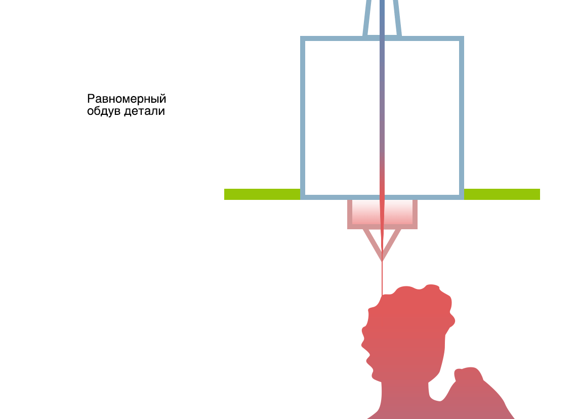Main feature of the UniHot is a cooling system. We located two fans on each side of the extruder to provide uniform cooling of a printed part. It is especially important for PLA plastic, because by printing of PLA the last layer should harden, before a new one will be extruded onto it.